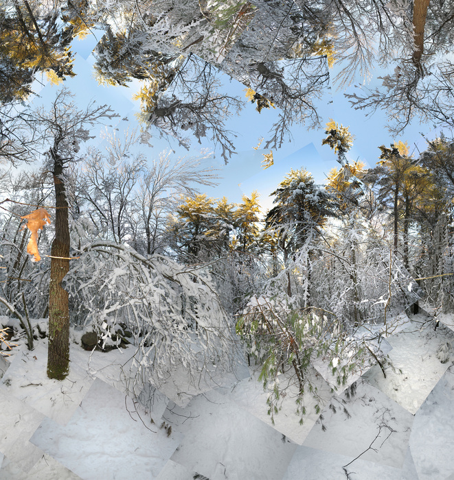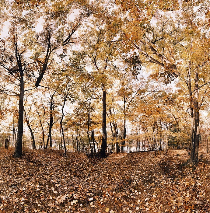 But then again, this morning I opened files to review my visits to the Arnold Arboretum and found this piece from October 2019. It is a pretty foliage composite but at the time I didn't think it had much going on. So I made an intuitive choice of placing colored snowflakes in the sky, projecting forward a few weeks when the color will have flown away to a New England season of cold and grey. Or whatever.